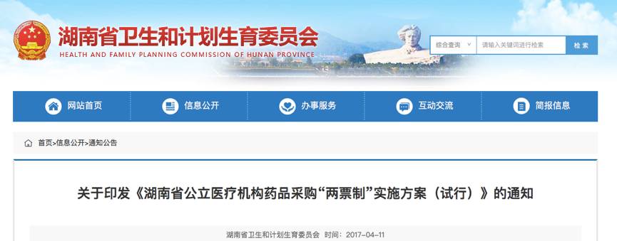 湖南省公立醫(yī)療機(jī)構(gòu)藥品采購(gòu)“兩票制”實(shí)施方案(試行)