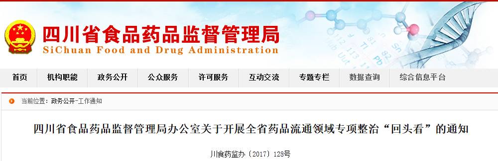 四川省食品藥品監(jiān)督管理局辦公室關(guān)于開展全省藥品流通領(lǐng)域?qū)m?xiàng)整治“回頭看”的通知