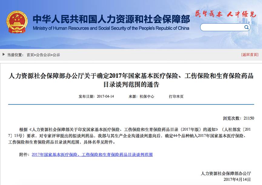 昨日(14日)傍晚,人社部公布了2017版醫(yī)保目錄談判藥品的最終名單,44個品種被納入醫(yī)保藥品目錄談判范圍。