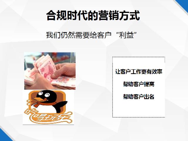合規(guī)時代營銷方式,我們?nèi)匀恍枰o醫(yī)生“利益”,那就是幫助他們提高工作效率,提升其水平和知名度。因此新常態(tài)下,醫(yī)藥代表的職能發(fā)生轉(zhuǎn)變,需要升級的是,大量使用移動互聯(lián)手段,進行數(shù)字營銷,進行客情服務(wù)。需要去除的是銷售賄賂、代金銷售和學(xué)術(shù)補貼。