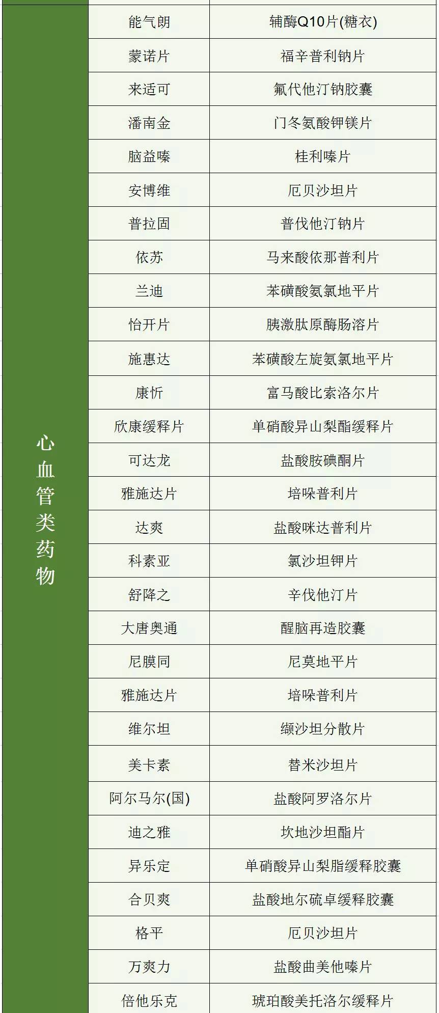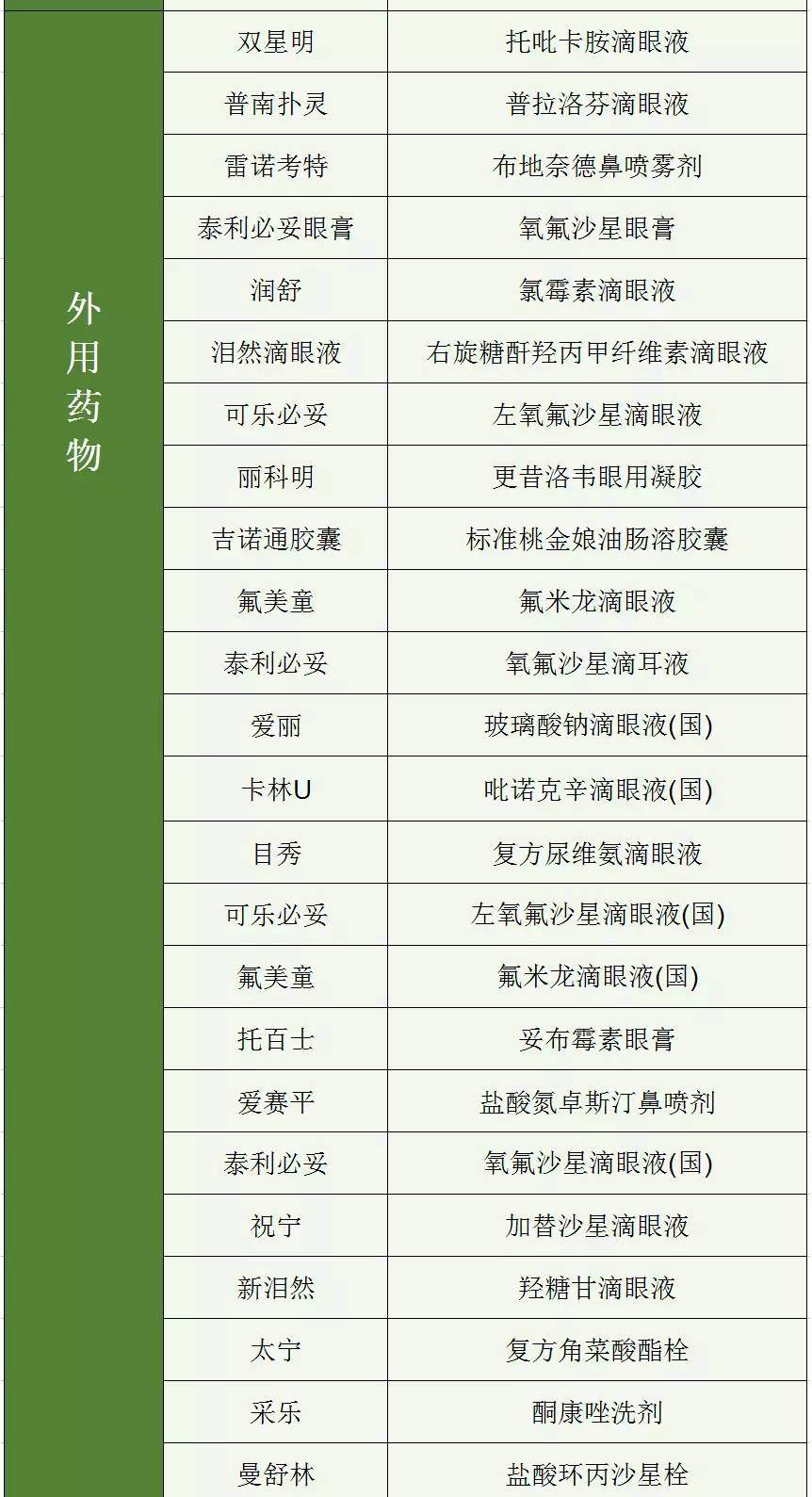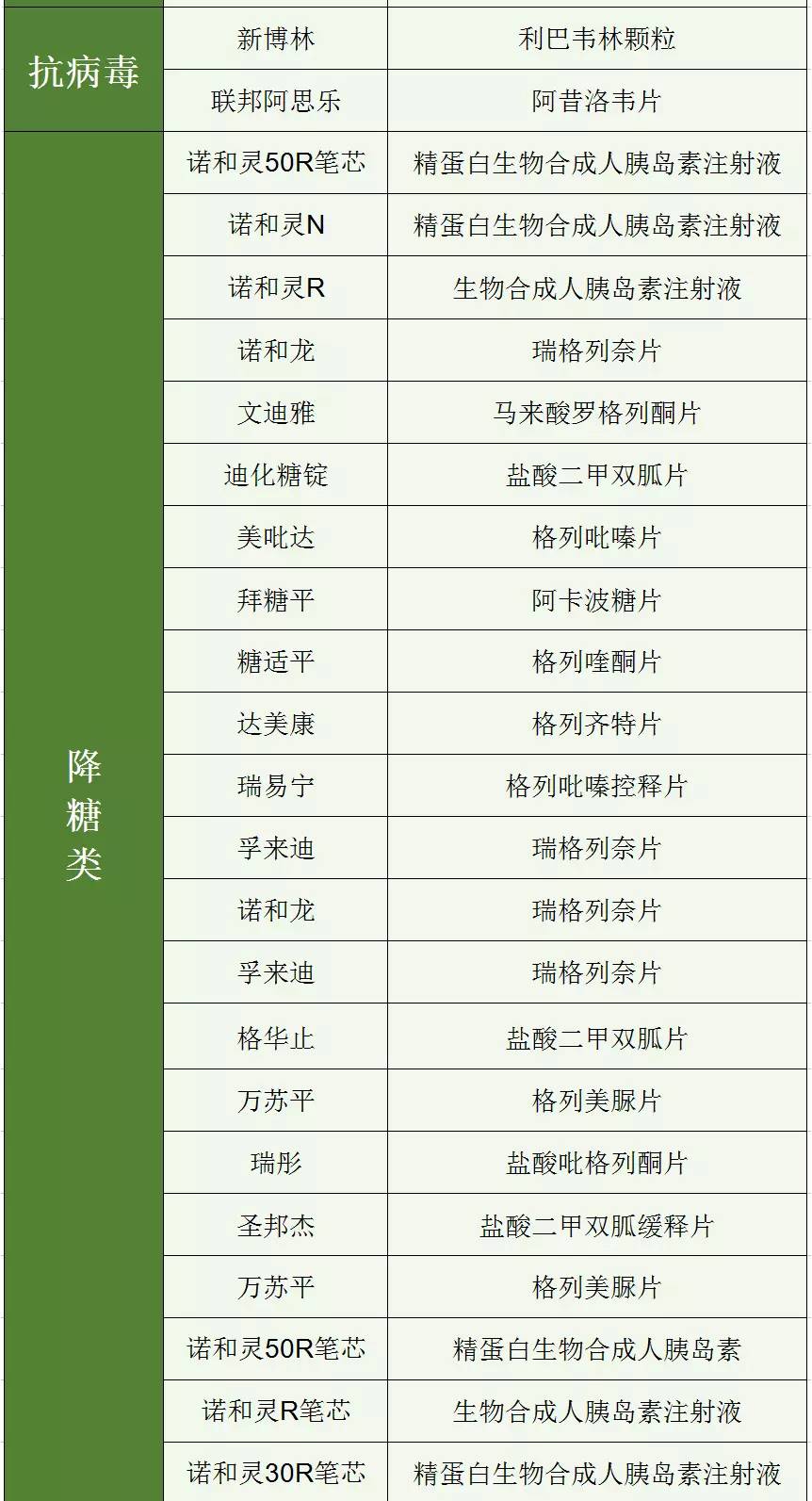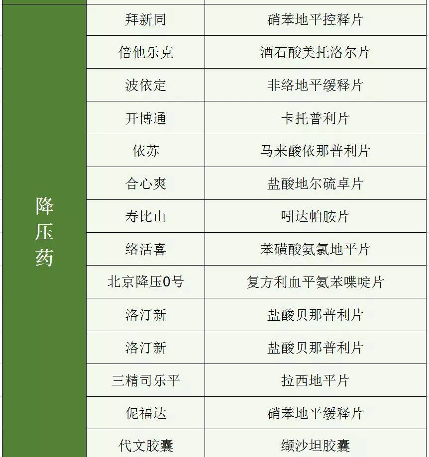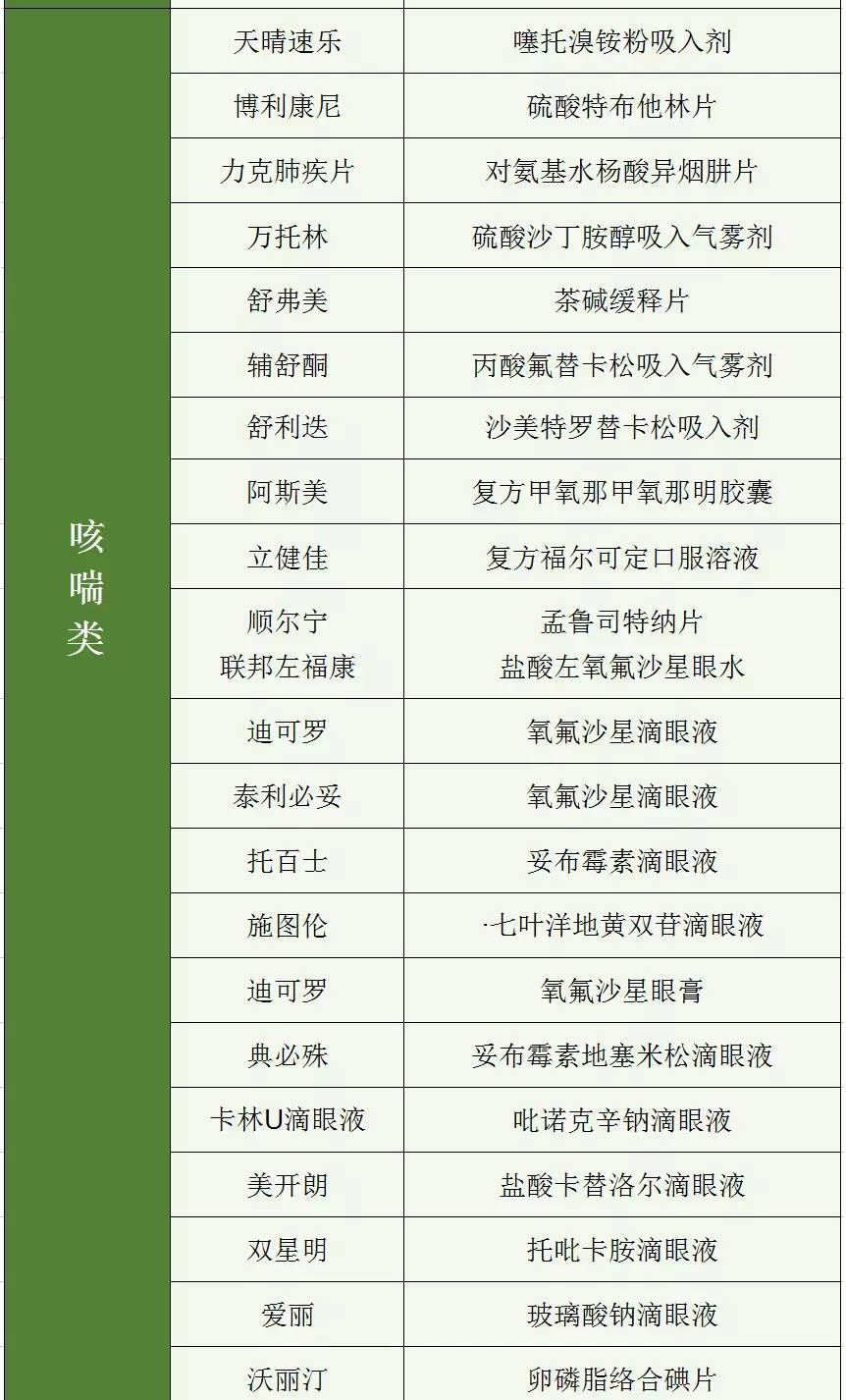 “商品名”與“通用名”對應一覽表: