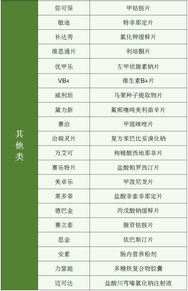 因此,筆者特意收集了“藥品通用名稱”對應的“商品名稱”以及某些藥品的曾用名,供藥店營業(yè)員參考。營業(yè)員熟練掌握了此類知識就能更好地為顧客服務好。