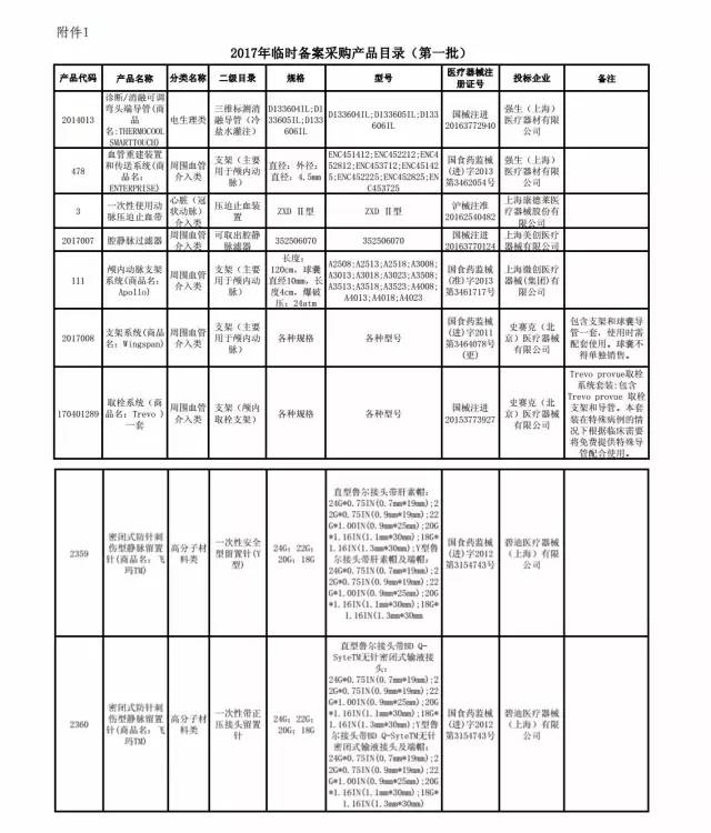 1.2017年臨時(shí)備案采購(gòu)產(chǎn)品目錄(第一批)