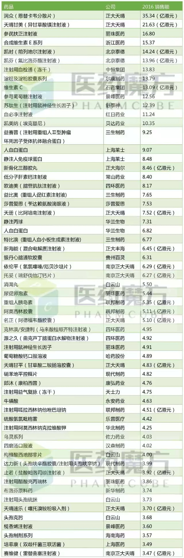 注:東阿阿膠公司的阿膠系列為53.71億元,華東醫(yī)藥的百令膠囊>20億元,卡博平>15億元,康恩貝的奧美拉唑腸溶膠囊>4.5億元。