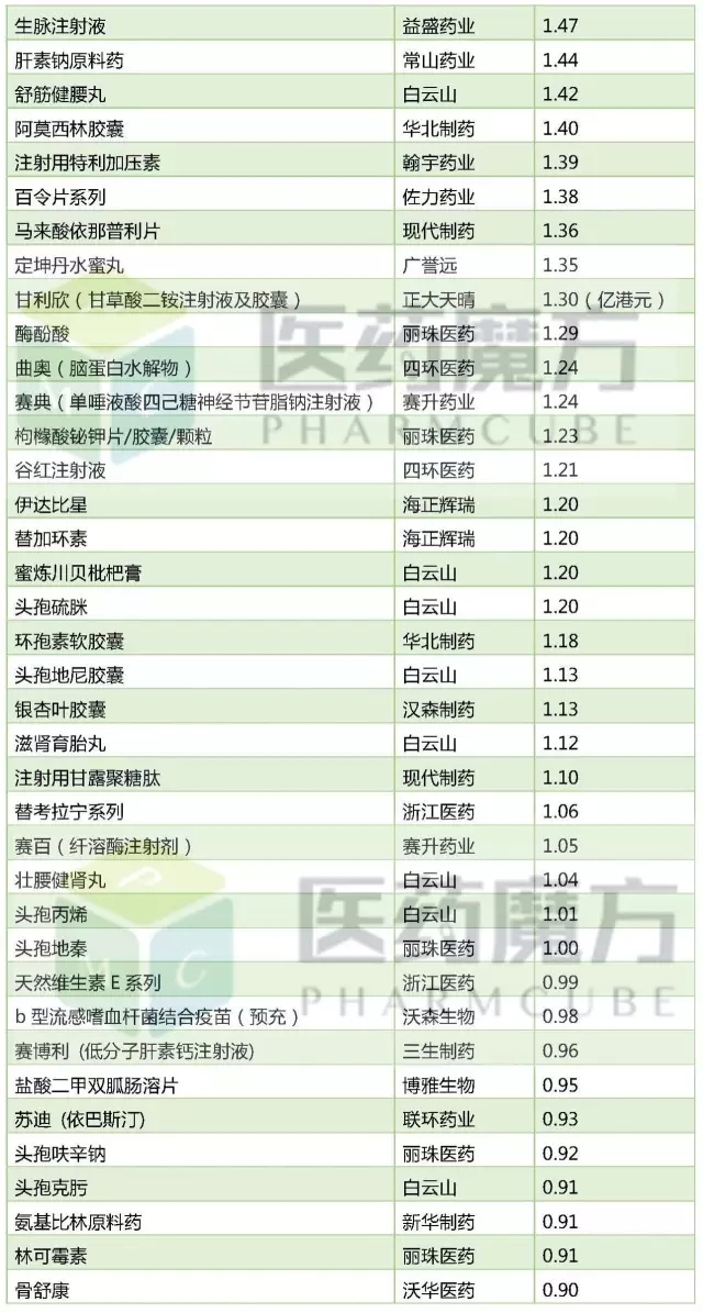 2016年銷售額過億的國產(chǎn)藥品(單位:億元)