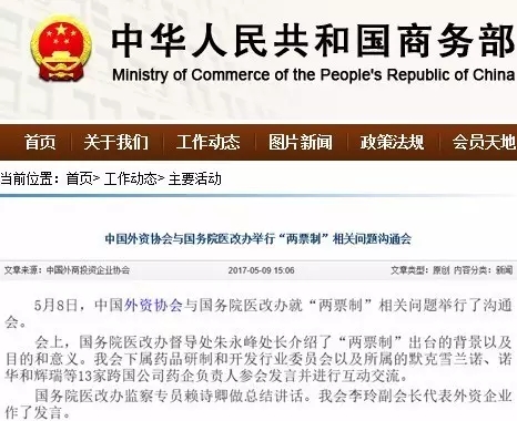 來(lái)自商務(wù)部的消息,5月8日,中國(guó)外資協(xié)會(huì)與國(guó)務(wù)院醫(yī)改辦就“兩票制”相關(guān)問(wèn)題舉行了溝通會(huì)。