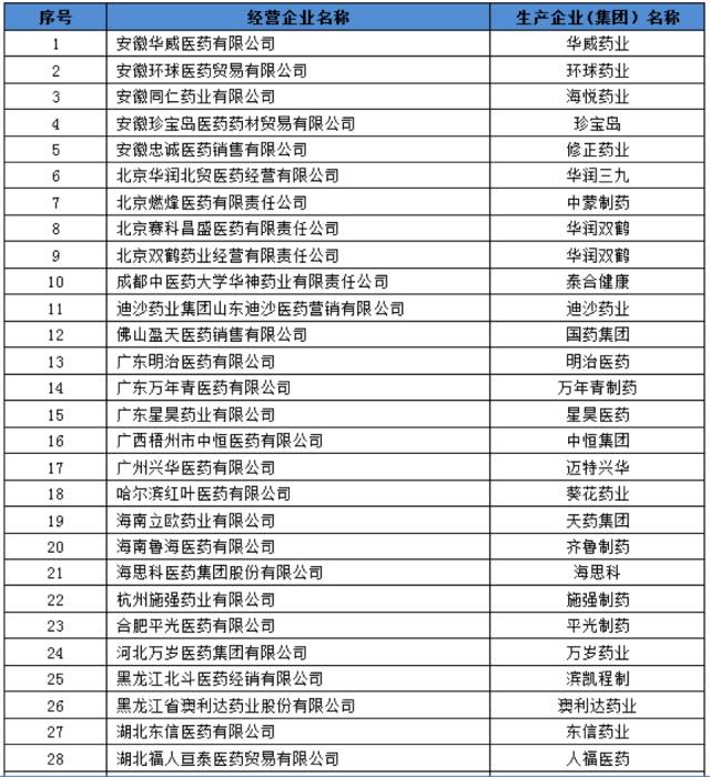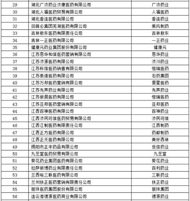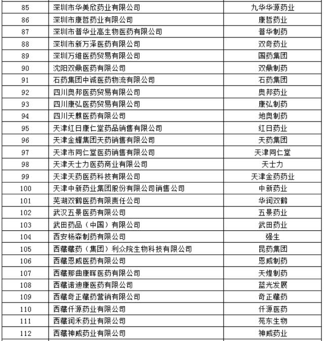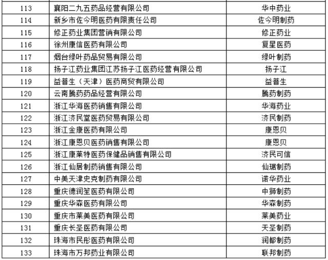 這133家具體藥商名單如下表: