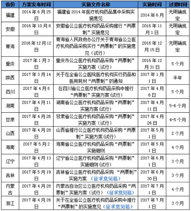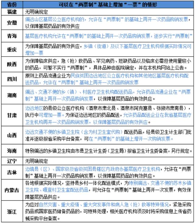 各實(shí)施“兩票制”省份可以增加“一票”的具體情況如下表: