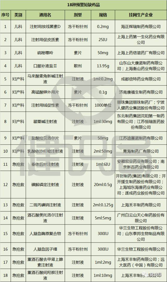 下面是健識(shí)局搜集整理的5省份今年發(fā)布的共139個(gè)短缺藥品清單,供參考。