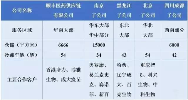順豐早在2014年3月便單獨(dú)成立了醫(yī)藥物流事業(yè)部;兩年后,順豐正式成立了“冷運(yùn)事業(yè)部”,分離醫(yī)藥冷鏈和生鮮冷鏈資源。據(jù)順豐透露,順豐醫(yī)藥供應(yīng)鏈有限公司注冊資金5000萬元,目前擁有冷藏車輛227輛,倉儲(chǔ)面積27666平方米,下設(shè)四個(gè)子公司:四川成都子公司、黑龍江子公司、北京子公司和江蘇南京子公司。
