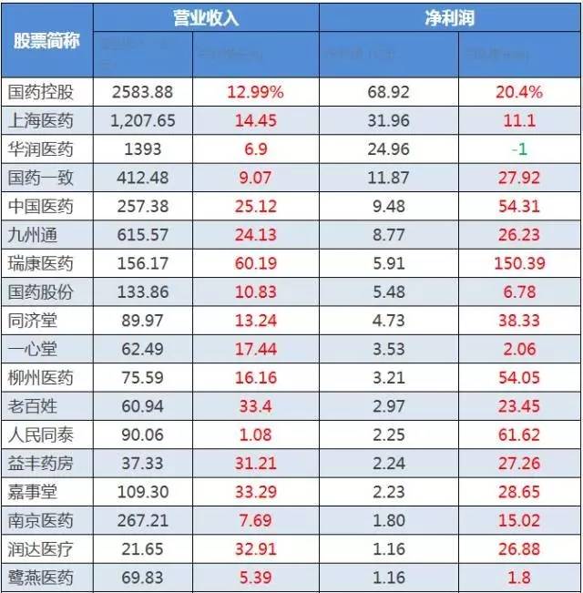 數(shù)據(jù)顯示,兩票制+營(yíng)改增的一年里,23家醫(yī)藥商業(yè)企業(yè)全部營(yíng)收凈利雙豐收,除少數(shù)企業(yè)凈利潤(rùn)同比去年有所下降外,大部分企業(yè)營(yíng)收凈利潤(rùn)同比去年均有較為不錯(cuò)的增長(zhǎng)——部分企業(yè)凈利潤(rùn)增長(zhǎng)甚至超過(guò)150%
