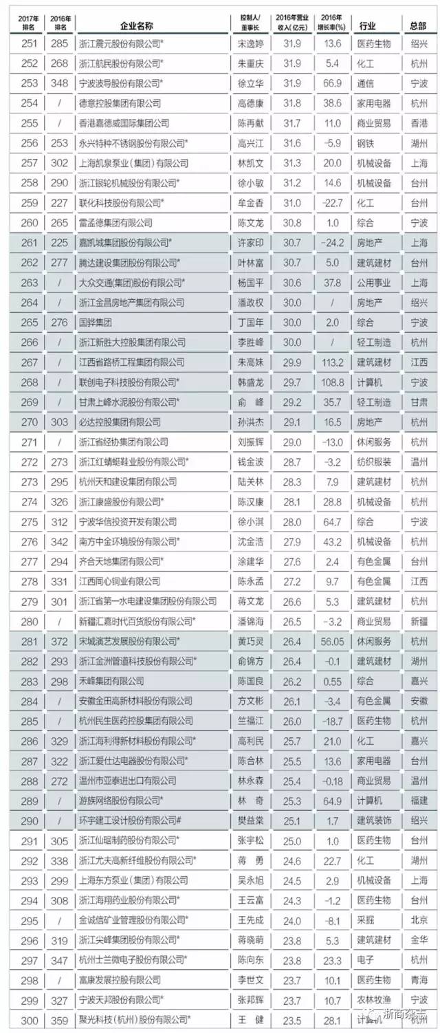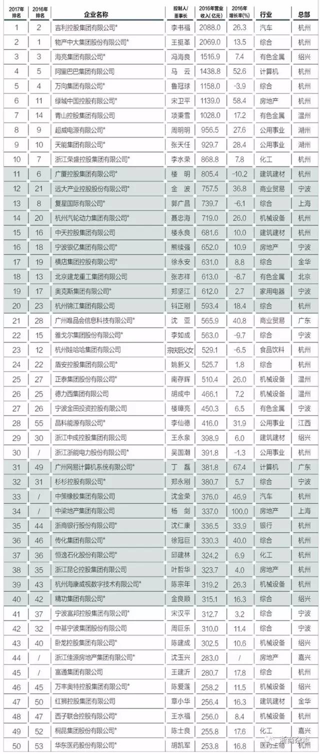 獨(dú)家發(fā)布丨2017浙商全國500強(qiáng)全榜單