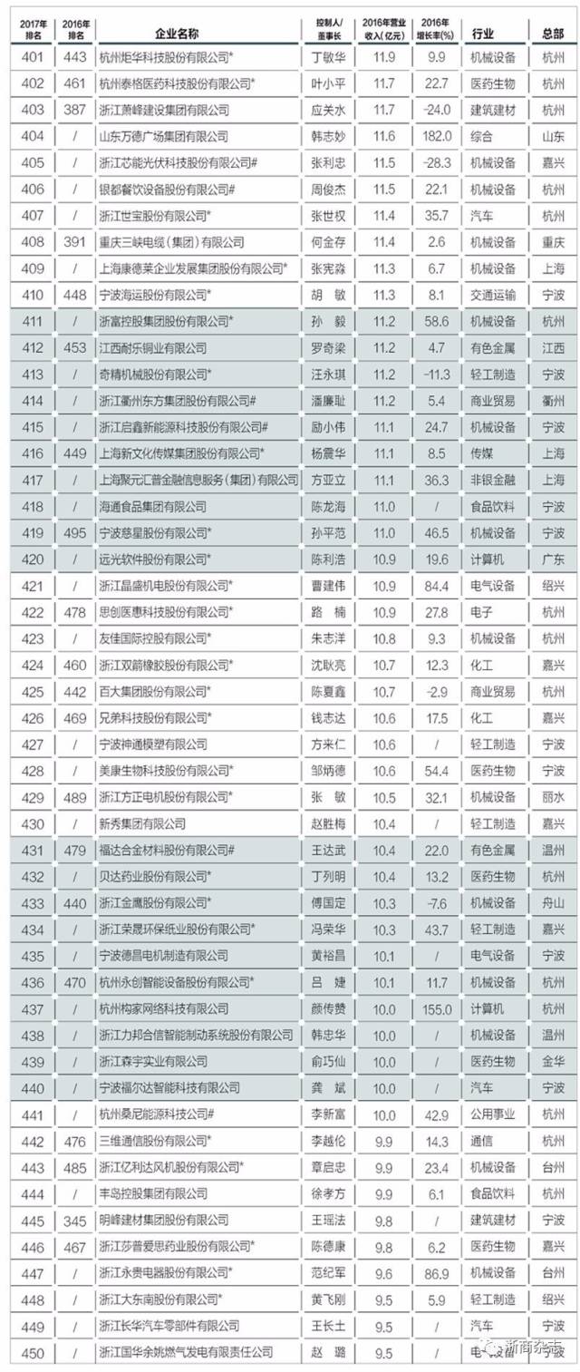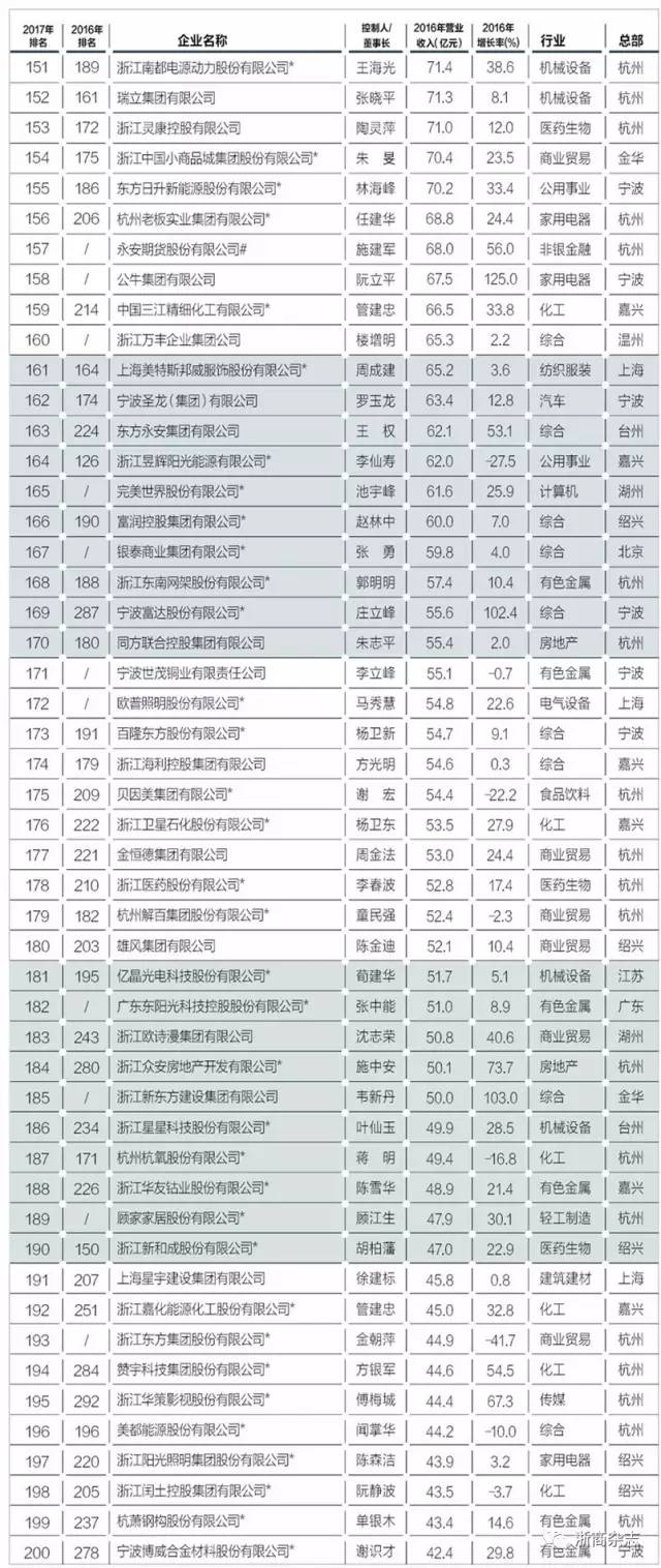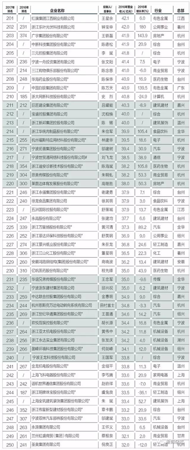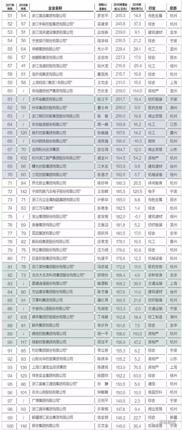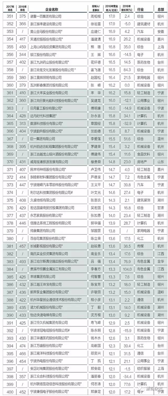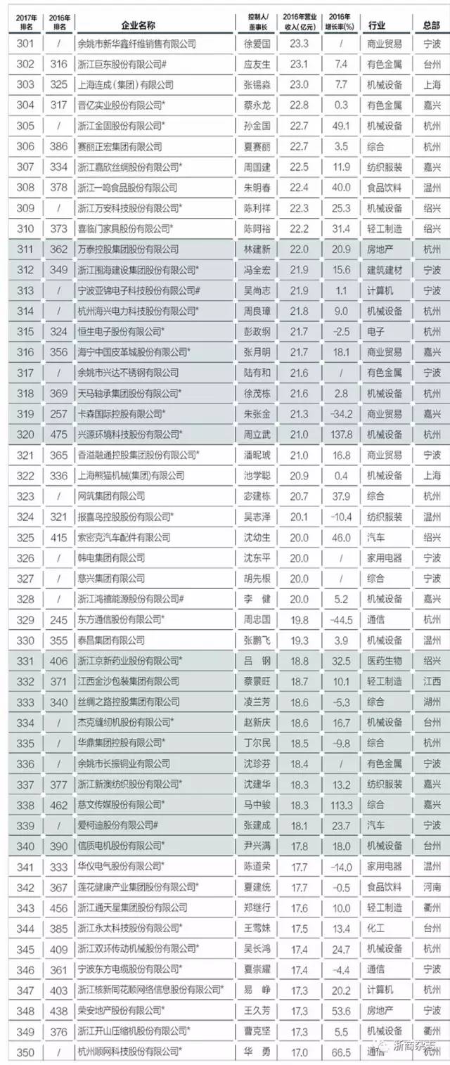 以下是“浙商銀行?2017浙商全國500強(qiáng)”榜單全名單: