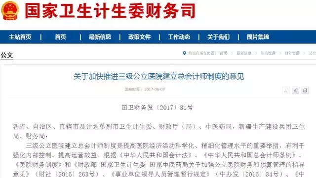 注意了!2018年,全國(guó)所有三級(jí)公立醫(yī)院都要設(shè)立總會(huì)計(jì)師。