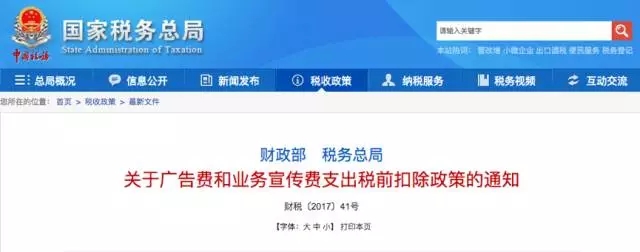 近日,財政部、國家稅務總局聯(lián)合發(fā)布《關于廣告費和業(yè)務宣傳費支出稅前扣除政策的通知》(財稅〔2017〕41號)(下稱“41號文”), 其中廣告費和業(yè)務宣傳費支出稅前扣除政策直接利好醫(yī)藥行業(yè)。