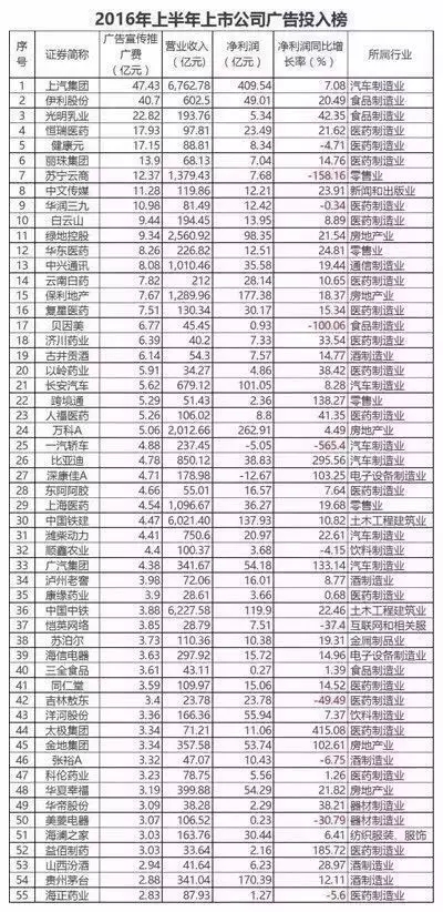 而與此形成印證的另一組數(shù)據(jù)來自2016年9月,億邦動力網(wǎng)發(fā)布的“2016年上半年上市公司廣告投入榜”上,排名前二十的公司中,醫(yī)藥制造企業(yè)竟占了“半壁江山”。