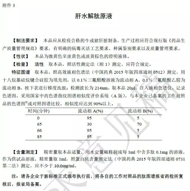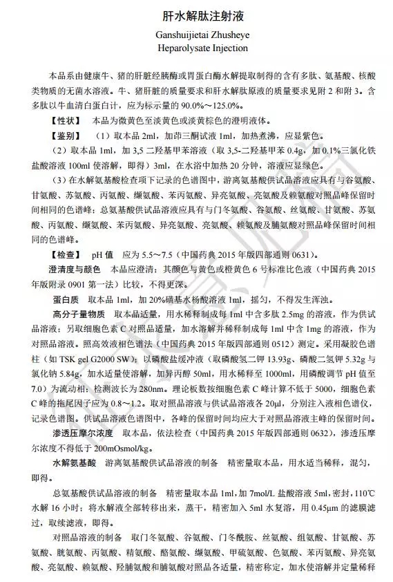 關(guān)于肝水解肽注射液國(guó)家標(biāo)準(zhǔn)的公示