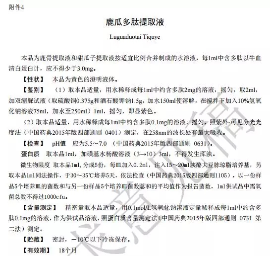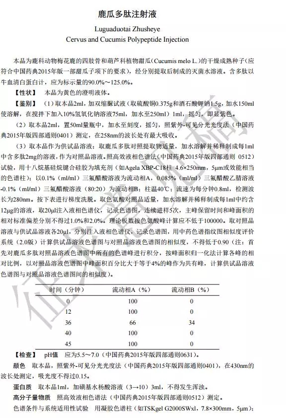關(guān)于鹿瓜多肽注射液國(guó)家標(biāo)準(zhǔn)的公示