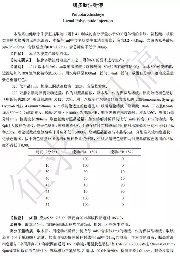 關(guān)于脾多肽注射液國(guó)家標(biāo)準(zhǔn)的公示