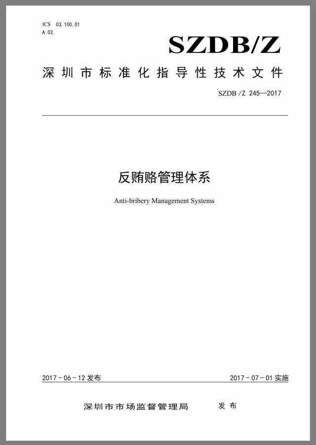近日,國內(nèi)首個反賄賂領(lǐng)域地方標準——《反賄賂管理體系深圳標準》(以下簡稱《深圳標準》)發(fā)布,并將在今年7月1日起實施。