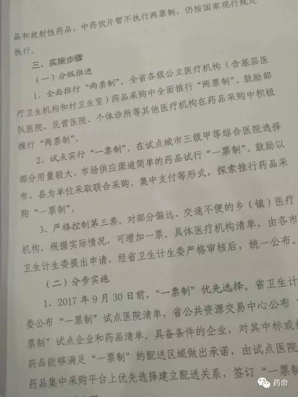 文件表示,在試點(diǎn)城市三級(jí)甲等綜合醫(yī)院選擇部分用量較大、市場供應(yīng)渠道簡單的藥品實(shí)行“一票制”,鼓勵(lì)以市、縣為單位采取聯(lián)合采購、集中支付等形式,探索推行藥品采購“一票制”。