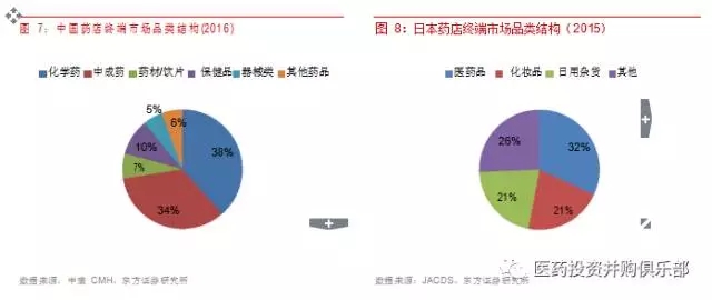 中國(guó)藥店藥品銷(xiāo)售占比達(dá) 80%,多元化程度低于美日等發(fā)達(dá)國(guó)家市場(chǎng)。在藥店中,藥品(包括化藥、中成藥和藥材類(lèi))是其主要的銷(xiāo)售品類(lèi),約占 80%,非藥類(lèi)產(chǎn)品僅占 20%左右,以保健品和醫(yī)療器械為主。而日本藥店中,醫(yī)藥產(chǎn)品銷(xiāo)售僅占 32%,而化妝品、日用雜貨和其他商品分別占 21%、22%和 26%,由于日本藥店化妝品的經(jīng)營(yíng)特色突出,日本綜合藥店(區(qū)別于僅銷(xiāo)售醫(yī)保處方藥的調(diào)劑藥局)也被稱(chēng)為“藥妝店”。美國(guó)藥店銷(xiāo)售結(jié)構(gòu)中,與處方藥相關(guān)的藥房銷(xiāo)售一般占總門(mén)店的60-70%,占凈利潤(rùn)的 30-40%,而前端銷(xiāo)售(包括 OTC、保健品、藥妝、日用品等,一般 OTC銷(xiāo)售額為處方藥的 1/10)銷(xiāo)售占收入 30-40%,凈利潤(rùn)占 60-70%,可見(jiàn)國(guó)內(nèi)藥店非藥類(lèi)健康品的銷(xiāo)占比仍然較低。
