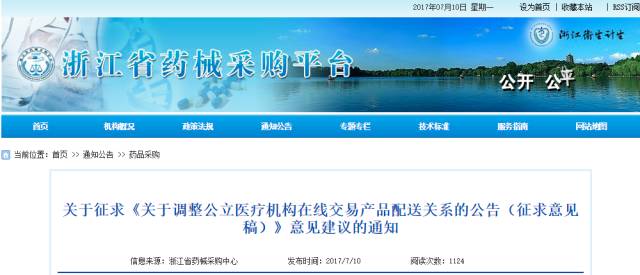 關(guān)于征求《關(guān)于調(diào)整公立醫(yī)療機(jī)構(gòu)在線交易產(chǎn)品配送關(guān)系的公告(征求意見稿)》意見建議的通知