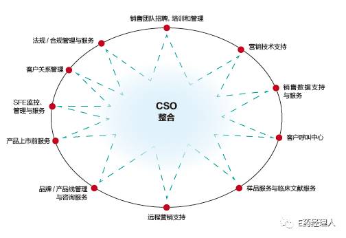 在藥品銷售合作方面,第三方的專業(yè)銷售外包組織(CSO)通常能表現(xiàn)出完全不一樣的競爭力。一般來說,這類企業(yè)通常保持了適度的規(guī)模,其核心運作以及組織架構(gòu)基本上完全為營銷的需要而量身定做,不僅能為制藥企業(yè)的新產(chǎn)品制定和執(zhí)行早期的產(chǎn)品上市計劃,同樣也能促進成熟產(chǎn)品的銷售延長其產(chǎn)品生命周期。