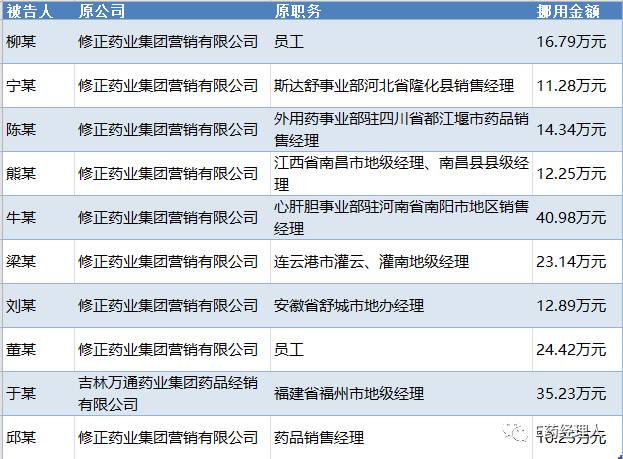 而另一個(gè)暴露公司管理機(jī)制混亂的地方則在于,在過去的半年時(shí)間中,修正藥業(yè)內(nèi)部共有十名原銷售負(fù)責(zé)人因?yàn)榉欠ㄅ灿霉疃黄鹪V,甚至被法院判處有期徒刑。具體來看,已被證實(shí)非法挪用公款的基本都是修正集團(tuán)派駐當(dāng)?shù)氐匿N售經(jīng)理,金額多則超過40萬元,少的也有10萬元。