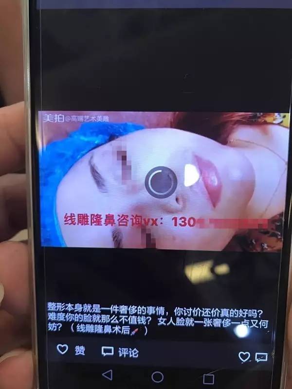 頗具誘惑性的話語配上整形后的“網(wǎng)紅臉”圖片,小李幾乎每天都會在朋友圈里發(fā)布十余條信息,為自己的整形業(yè)務(wù)打廣告。別說,效果還不