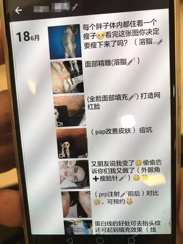 小李先是通過微信購買了一些美容針劑,今年1月初開始,她便通過朋友圈發(fā)布廣告,招攬微整形生意。