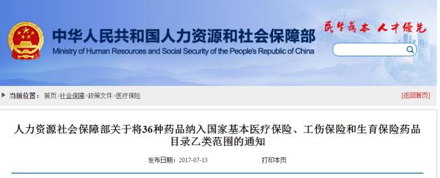 一、將利拉魯肽注射劑等36種藥品(以下統(tǒng)稱“有關(guān)藥品”)納入《國家基本醫(yī)療保險、工傷保險和生育保險藥品目錄(2017年版)》(以下簡稱藥品目錄)乙類范圍,各?。▍^(qū)、市)社會保險主管部門不得將有關(guān)藥品調(diào)出目錄,也不得調(diào)整限定支付范圍。