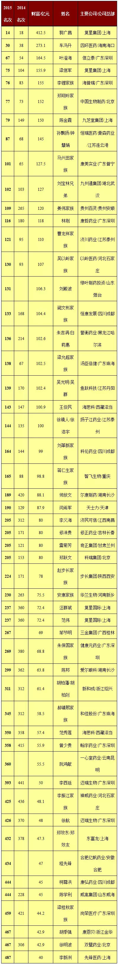 《2015新財(cái)富500富人榜》出爐,哪些醫(yī)藥土豪入選?