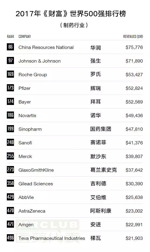 2017《財富》世界500強發(fā)布,23家醫(yī)藥企業(yè)上榜!