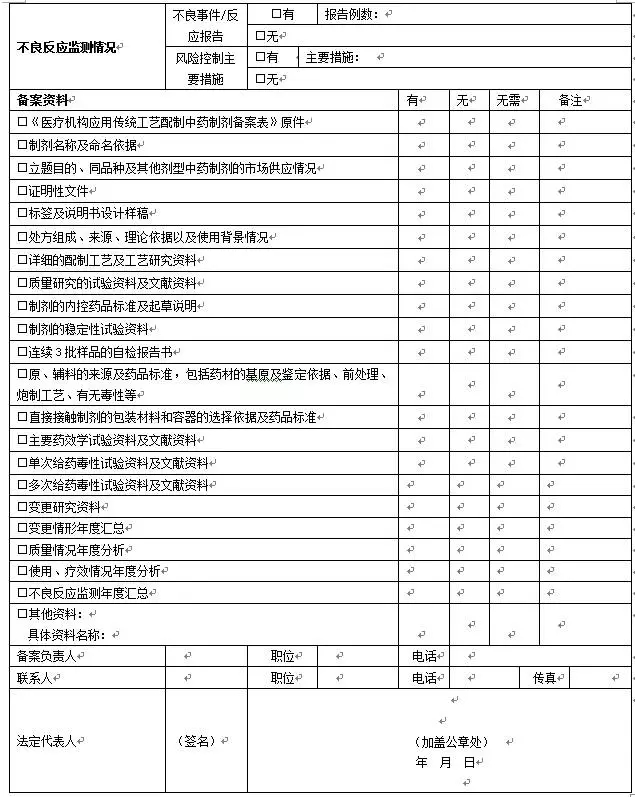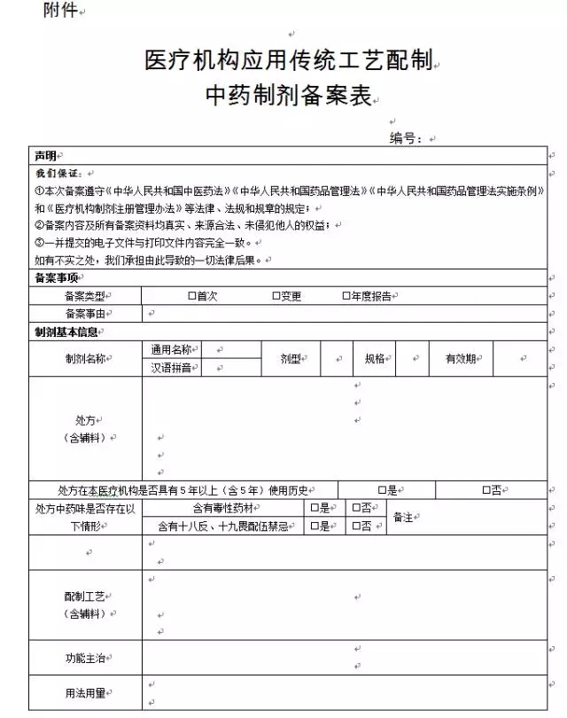附件:醫(yī)療機構(gòu)應(yīng)用傳統(tǒng)工藝配制中藥制劑備案表