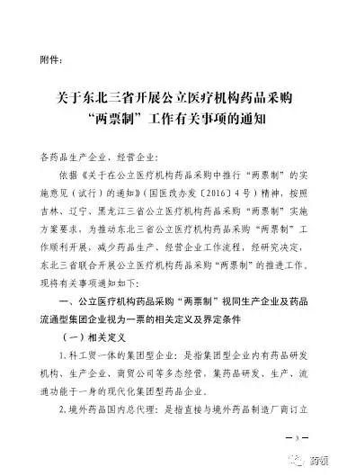 東北三省開展公立醫(yī)療機(jī)構(gòu)藥品采購(gòu)聯(lián)合進(jìn)行“兩票制”界定