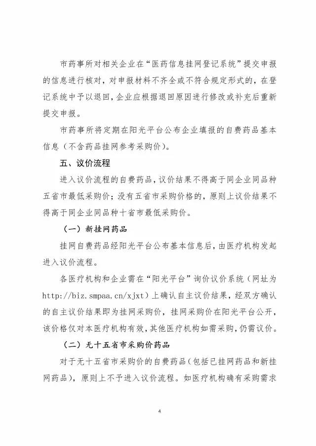 2、所有在本市銷售的自費(fèi)藥品掛網(wǎng)采購價必須由藥品生產(chǎn)企業(yè)通過上海市醫(yī)藥采購服務(wù)與監(jiān)管信息系統(tǒng)內(nèi)詢價議價系統(tǒng)與醫(yī)療機(jī)構(gòu)按要求議定成交價后,方可進(jìn)行銷售。