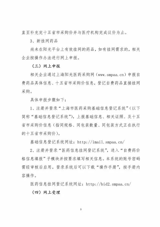 1、自費(fèi)藥品基礎(chǔ)信息及十五省市采購價信息由藥品生產(chǎn)企業(yè)(或委托企業(yè),下同)通過上海陽光醫(yī)藥采購網(wǎng)(www.smpaa.cn)申報。