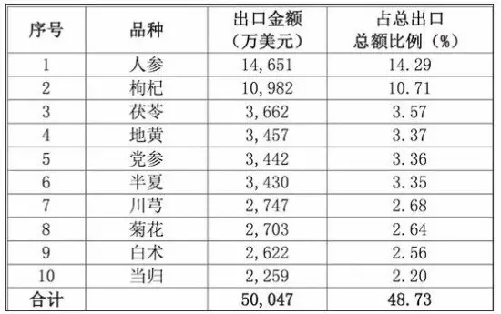 我國中藥材資源豐富,出口中藥材及飲片品種達數(shù)百種。2016年,出口金額和出口數(shù)量較多的品種依然以滋補養(yǎng)生類為主。