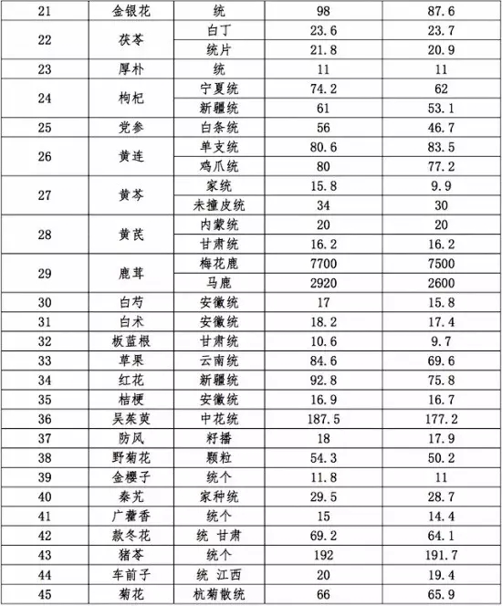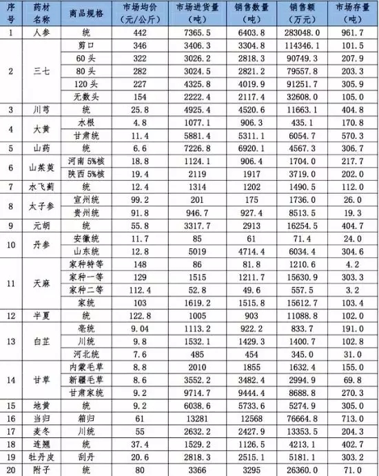 數(shù)據(jù)來源:中藥材天地網(wǎng)。