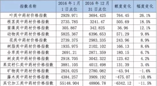附表4 2016年中藥材各類別價格指數(shù)變化