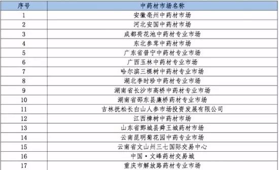 附表7 參與統(tǒng)計的17家中藥材市場(排名不分先后)
