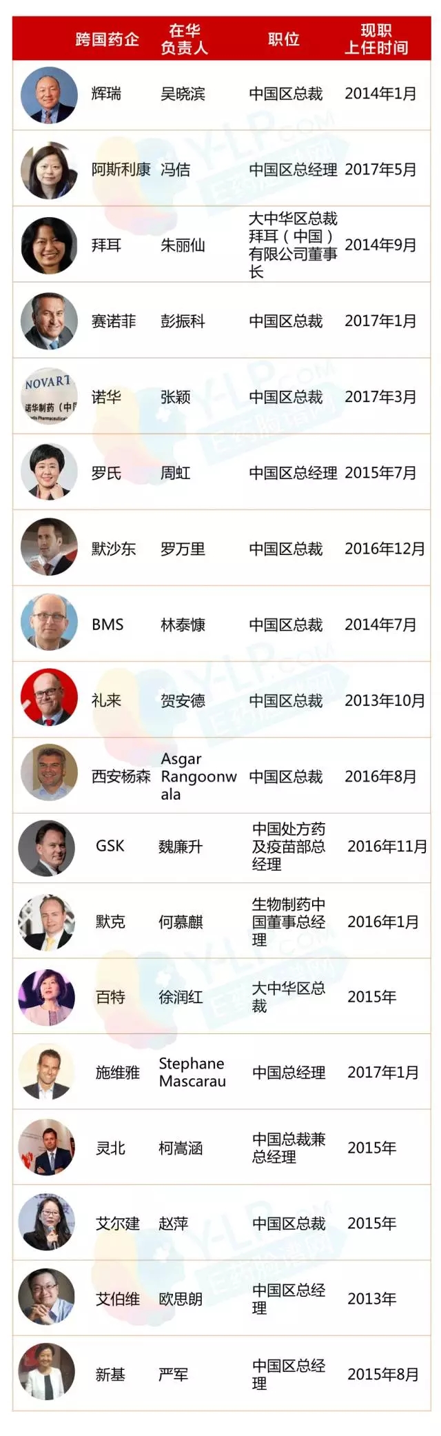 TOP20跨國藥企在華總經(jīng)理一覽表