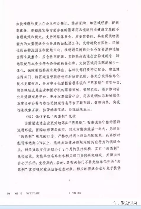 在之前的文件中就表示要在試點(diǎn)城市的三甲醫(yī)院選擇部分用量較大、市場(chǎng)供應(yīng)渠道簡(jiǎn)單的藥品施行“一票制”,并且鼓勵(lì)以市、縣為單位采取聯(lián)合采購、集中支付等形式,探索推行藥品采購“一票制”。