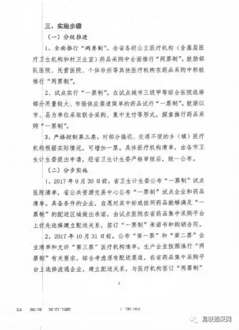(2)執(zhí)行時(shí)間,關(guān)于醫(yī)用耗材采購工作將藥品采購“兩票制”試行情況,擇期參照?qǐng)?zhí)行。