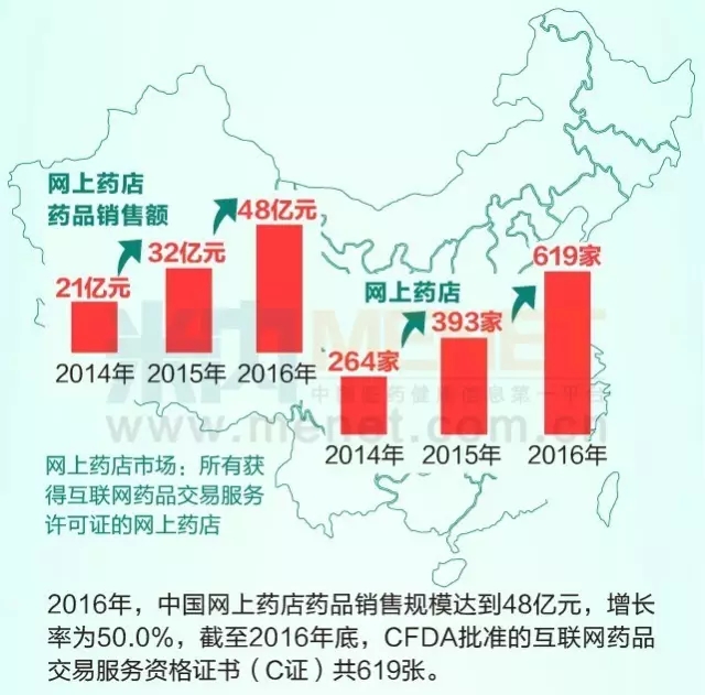 2016年我國網(wǎng)上藥店達619家,銷售額同比增長50%
