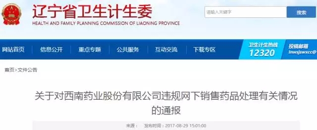 昨日(8月29日),遼寧省衛(wèi)計(jì)委發(fā)布《關(guān)于對西南藥業(yè)股份有限公司違規(guī)網(wǎng)下銷售藥品處理有關(guān)情況的通報(bào)》,對西南藥業(yè)股份有限公司及其經(jīng)銷商遼寧一鼎醫(yī)藥有限公司作出相應(yīng)處罰。