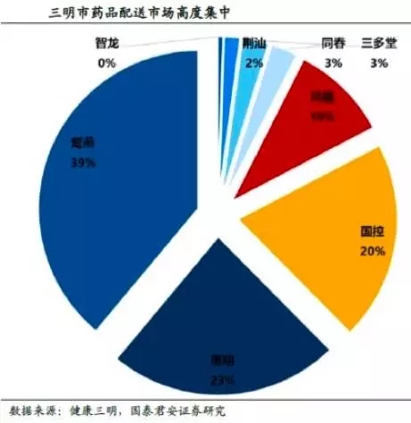 “兩票制”使配送業(yè)務(wù)向合規(guī)的大配送商傾斜,使行業(yè)集中度快速提升,如鷺燕醫(yī)藥、國控、惠民3家批發(fā)企業(yè)占了三明市業(yè)務(wù)量的82%。