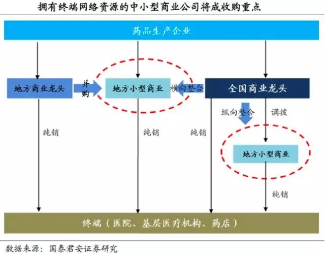 兩票制的實(shí)施,將導(dǎo)致大量有終端網(wǎng)絡(luò)的中小型商業(yè)公司被并購整合。