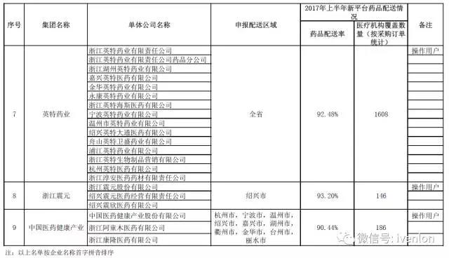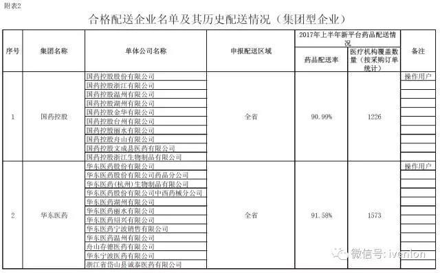 一、公布的合格配送企業(yè)名單中藥品配送率和醫(yī)療機(jī)構(gòu)覆蓋數(shù)量,僅供投標(biāo)人在建立配送關(guān)系時(shí)參考;集團(tuán)型配送企業(yè)名單中標(biāo)注的“操作用戶(hù)”為集團(tuán)自行指定的具有操作權(quán)限的代表企業(yè)。